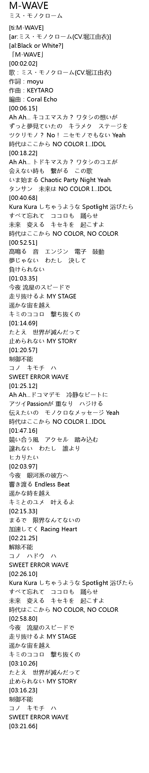 | [00:00.26] | 「M-WAVE」 |