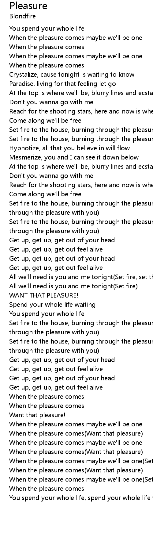 | [00:03.000] | When the pleasure comes maybe we'll be one |