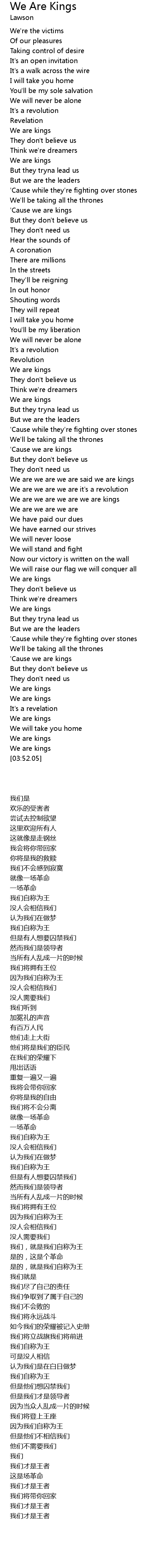 | [00:53.48] | We are kings |