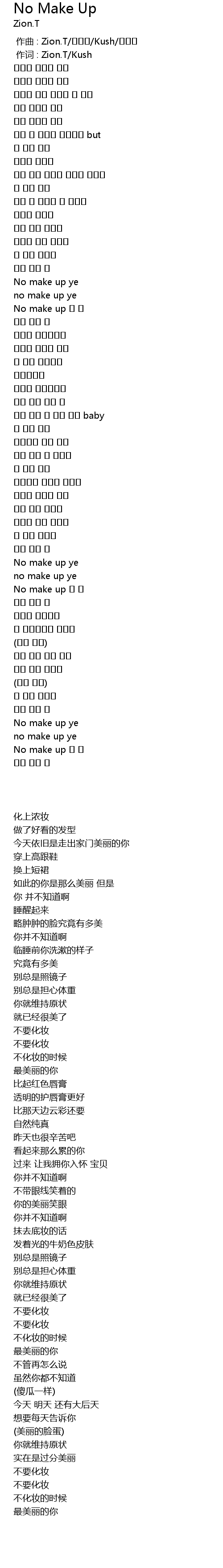 作词 : Zion.T/Kush |