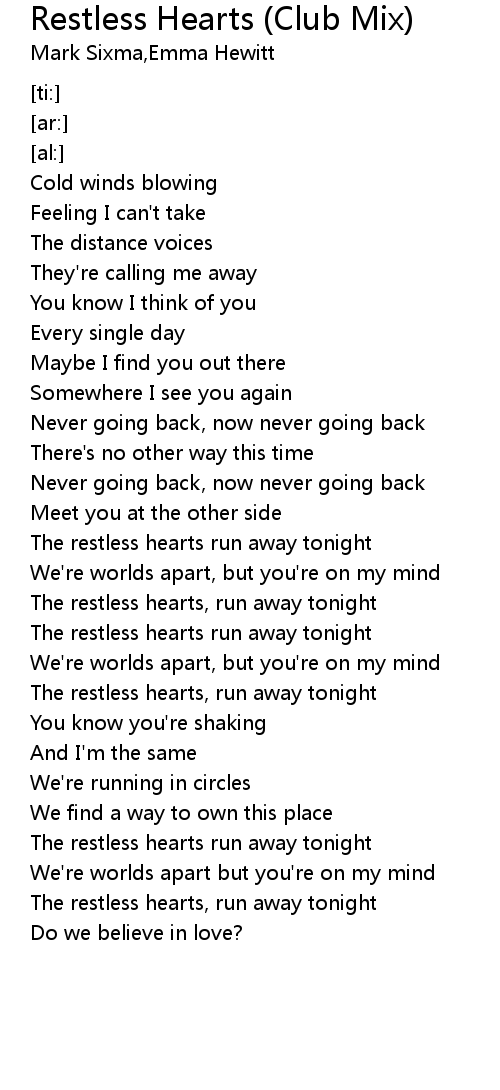 The restless hearts, run away tonight |