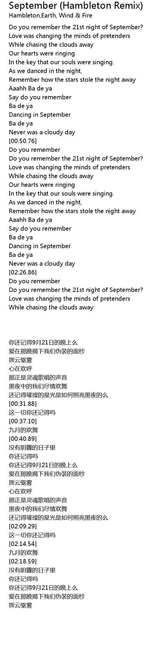 Do you remember the 21st night of September? |