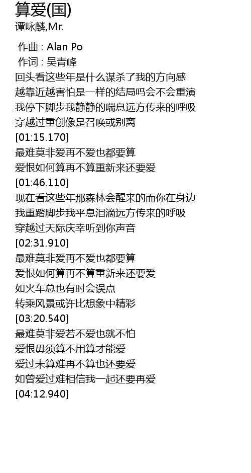 | [03:40.490] | 爱恨毋须算不用算才能爱 |