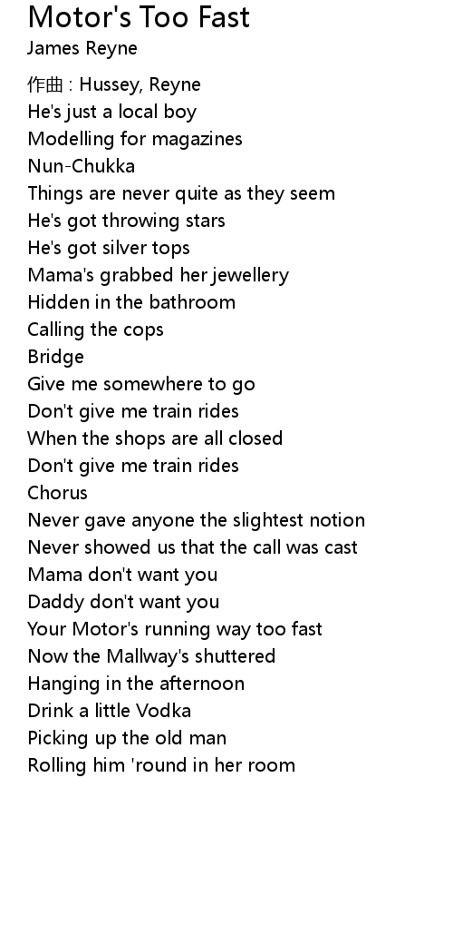 | Song | Motor's Too Fast |