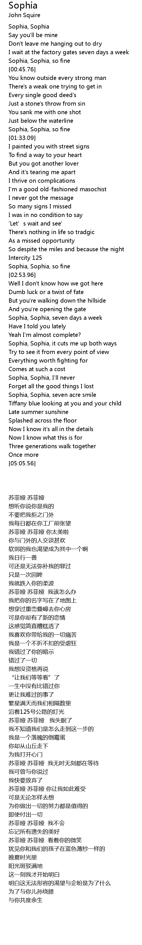 | [04:19.54] | Sophia, Sophia, seven acre smile |