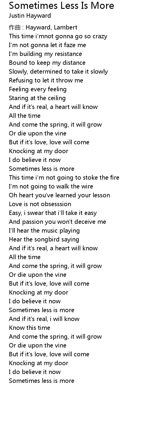 | Song | Sometimes Less Is More |
