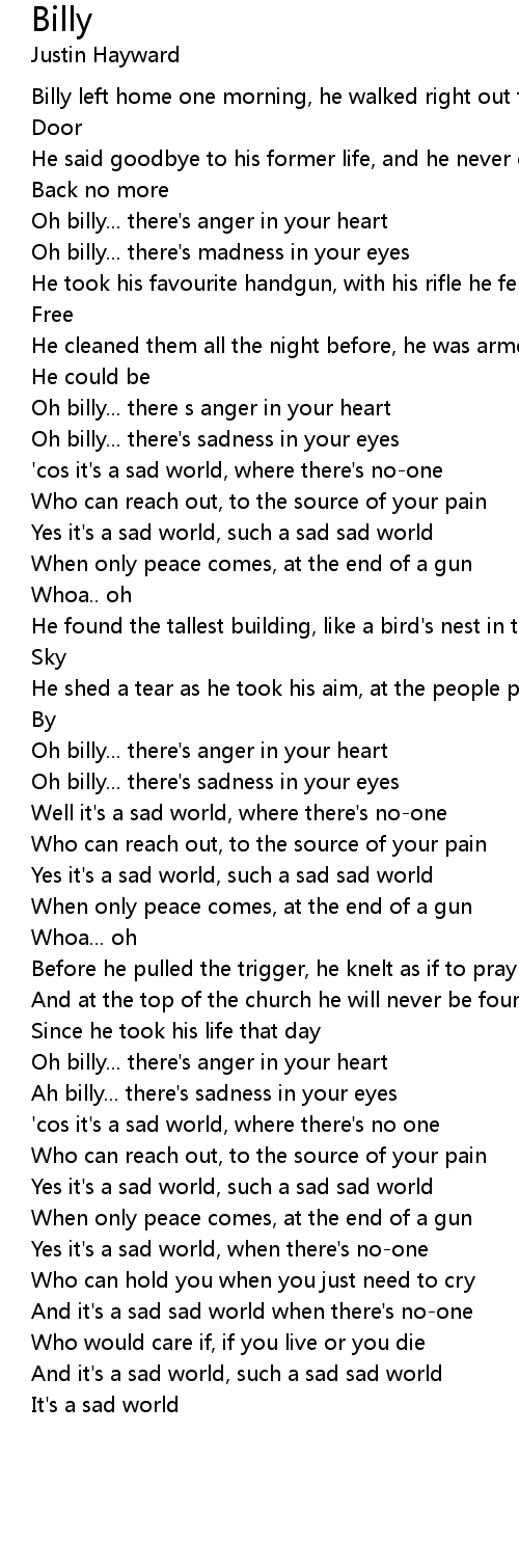 Oh billy... there's sadness in your eyes |