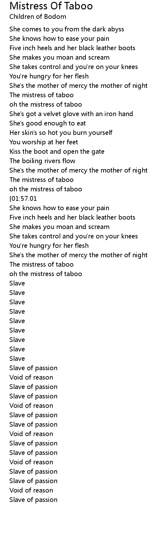 oh the mistress of taboo |