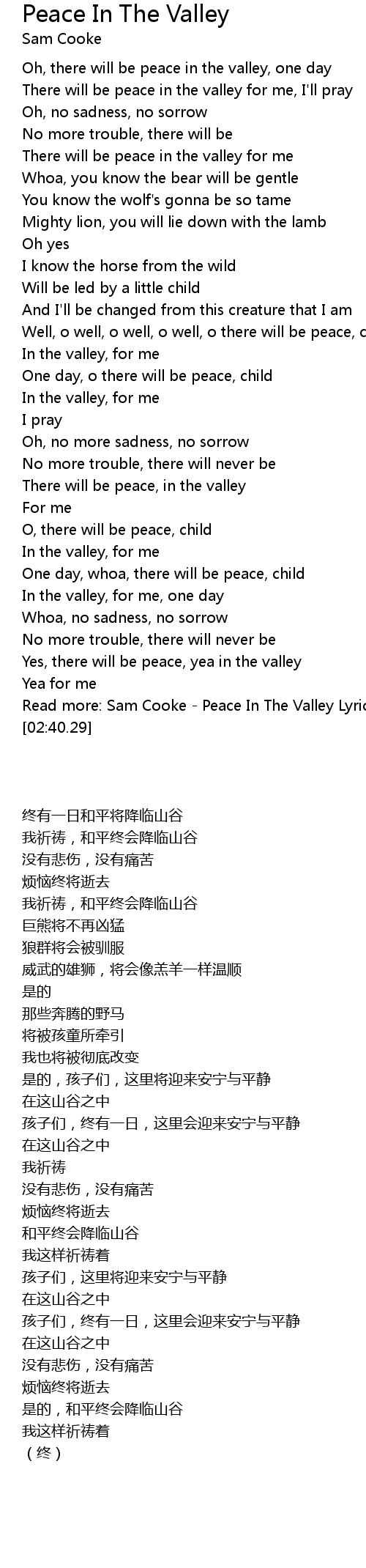 [02:39.79] Read more: Sam Cooke - Peace In The Valley Lyrics | MetroLyrics