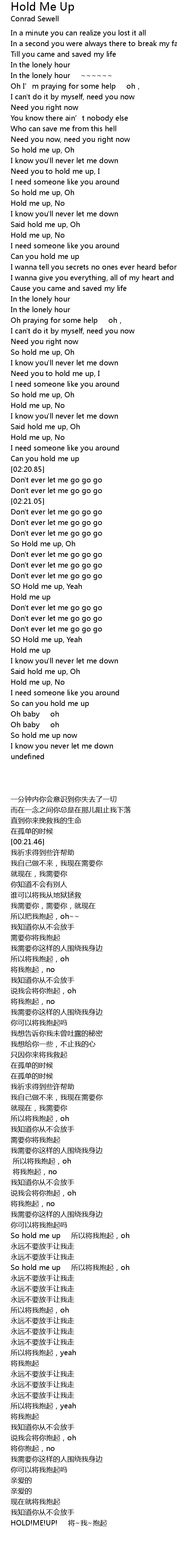 | [02:54.72] | Said hold me up, Oh |