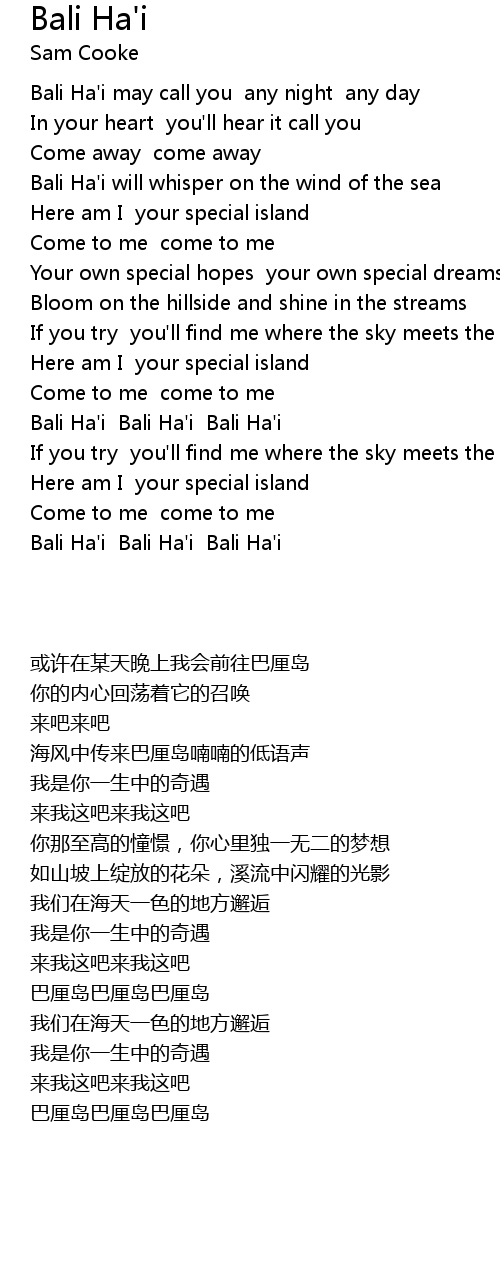 Bali Ha'i Bali Ha'i Bali Ha'i |