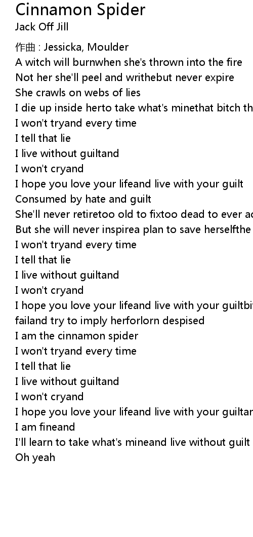 | I die up inside herto take what' s minethat bitch the cinnamon spider | |