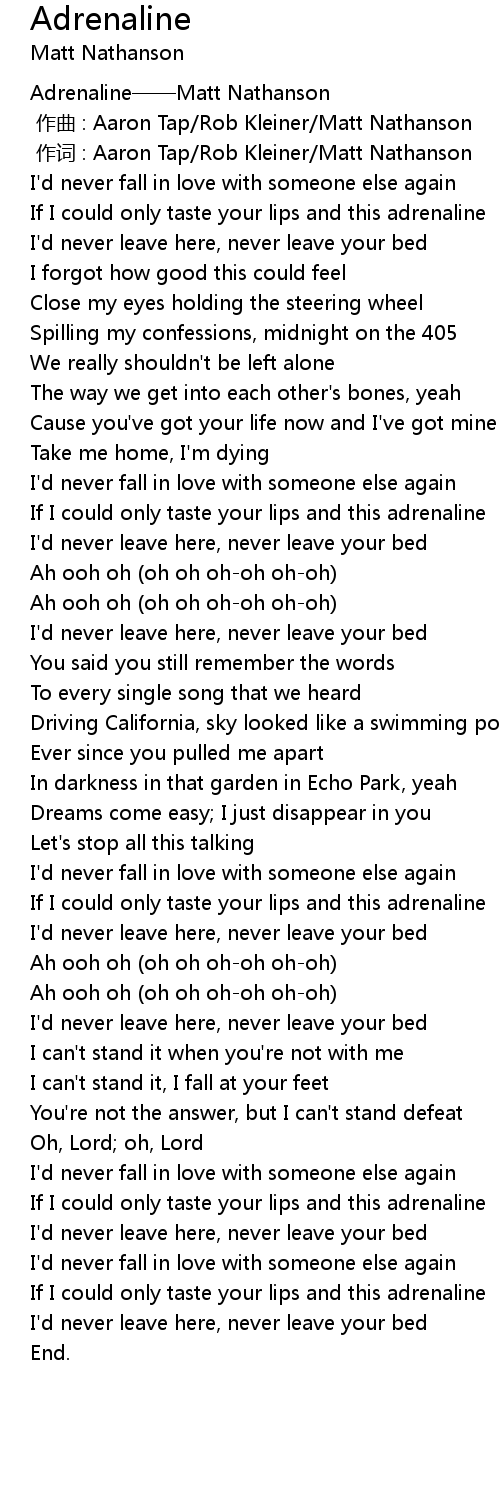 | [02:25.010] | If I could only taste your lips and this adrenaline |