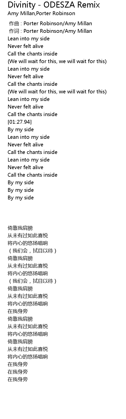 | [00:01.00] | zuò cí : Porter Robinson Amy Millan |