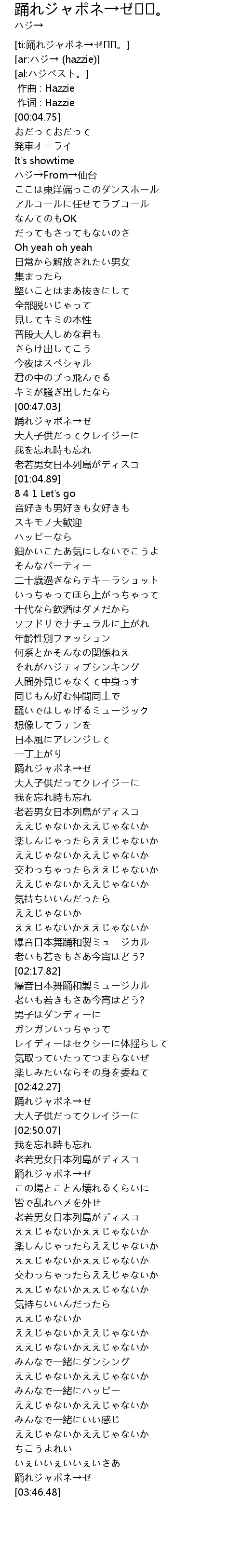 | [03:43.35] | 踊れジャポネ→ゼ |