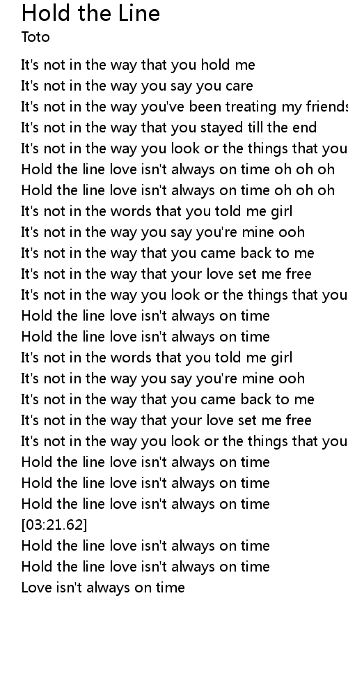 [00:54.90] Hold the line love isn't always on time oh oh oh