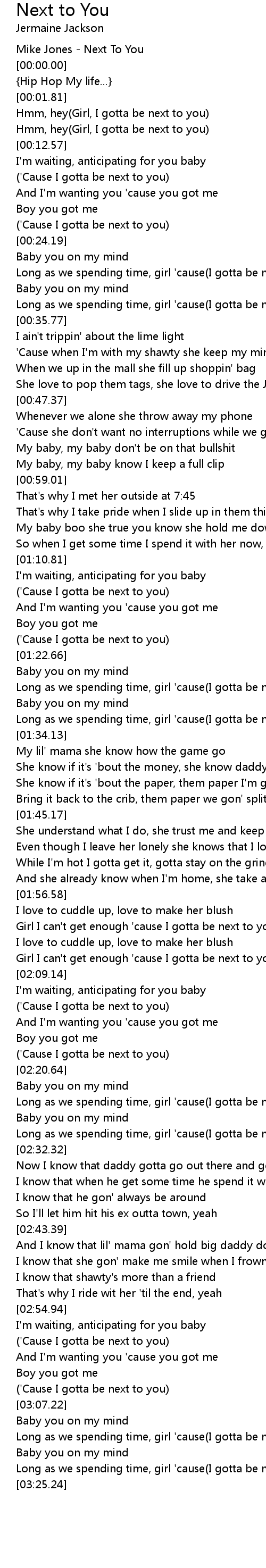 Long as we spending time, girl 'cause(I gotta be next to you) |