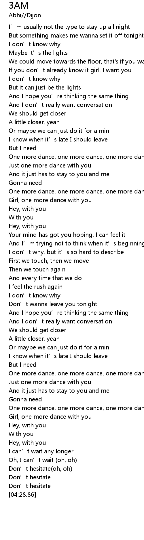 | [03:24.65] | Girl, one more dance with you |