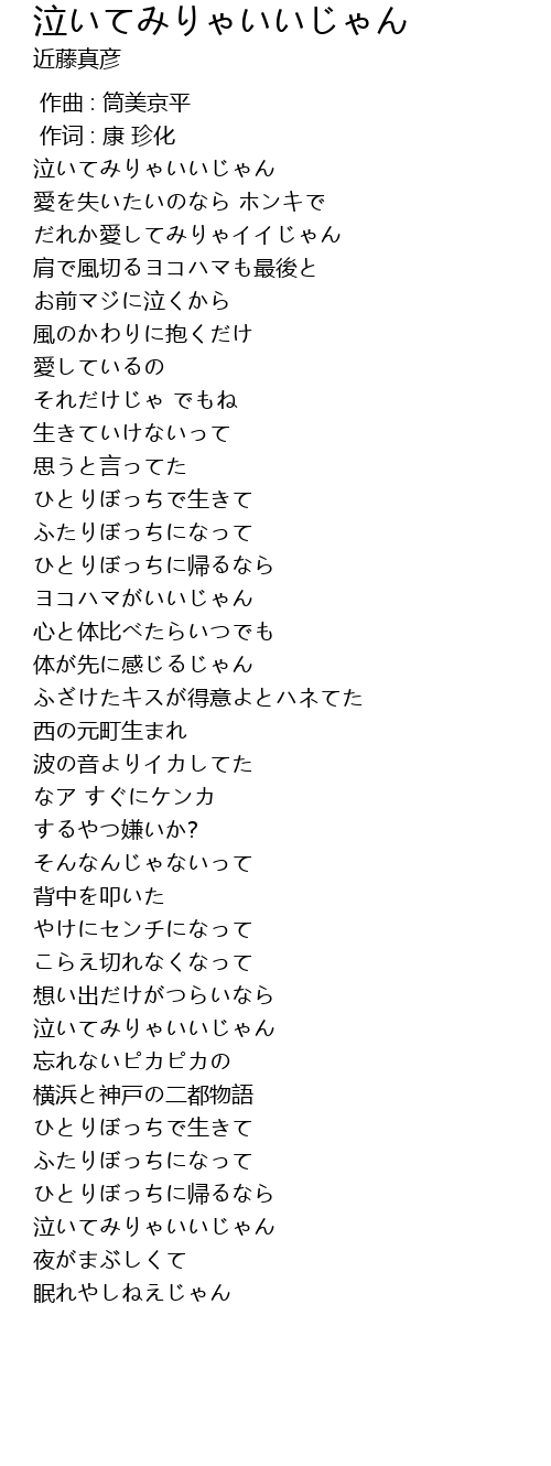 | [02:30.63] | 泣いてみりゃいいじゃん |