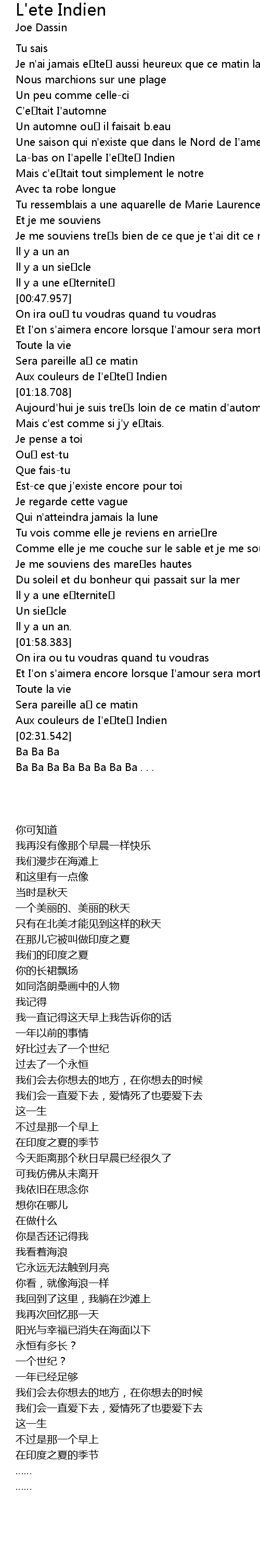 | [02:23.662] | Aux couleurs de I' e te Indien |