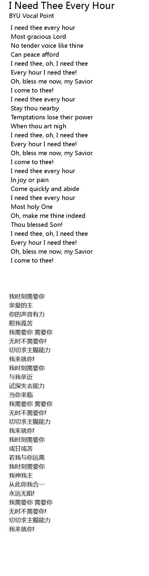 I need thee every hour |