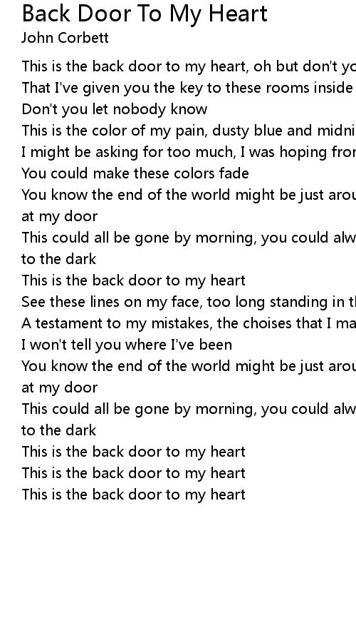 This is the back door to my heart, oh but don't you tell a soul |