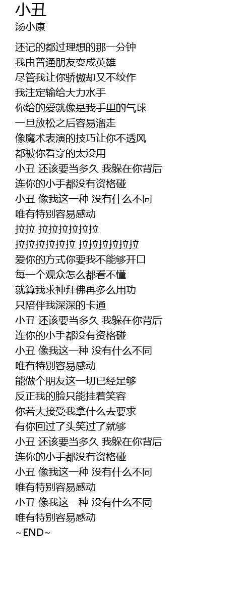 | [03:04.64] | 小丑 像我这一种 没有什么不同 |