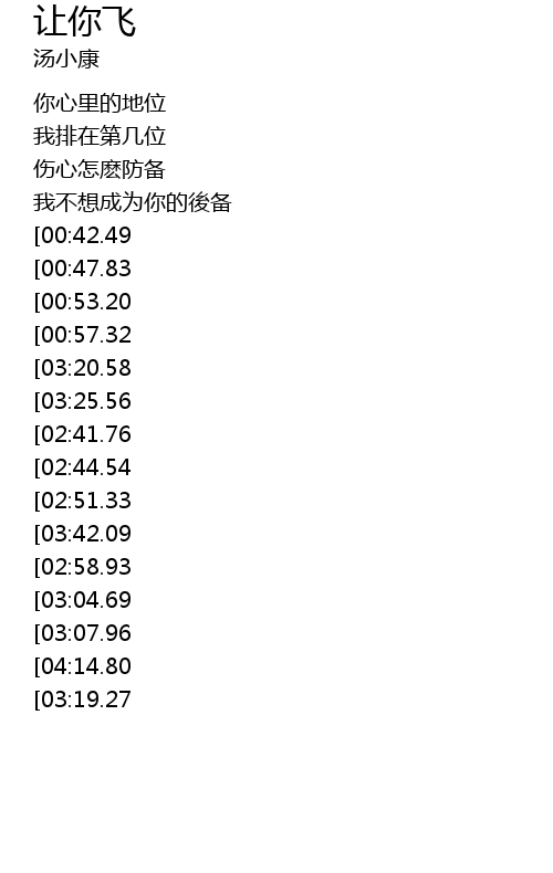 | [03:45.44][03:42.09][02:53.32][01:26.02] | 我让你飞 |