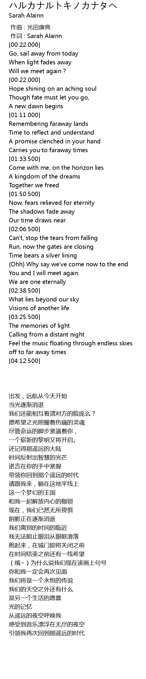 | [00:35.000] | Go, sail away from today |