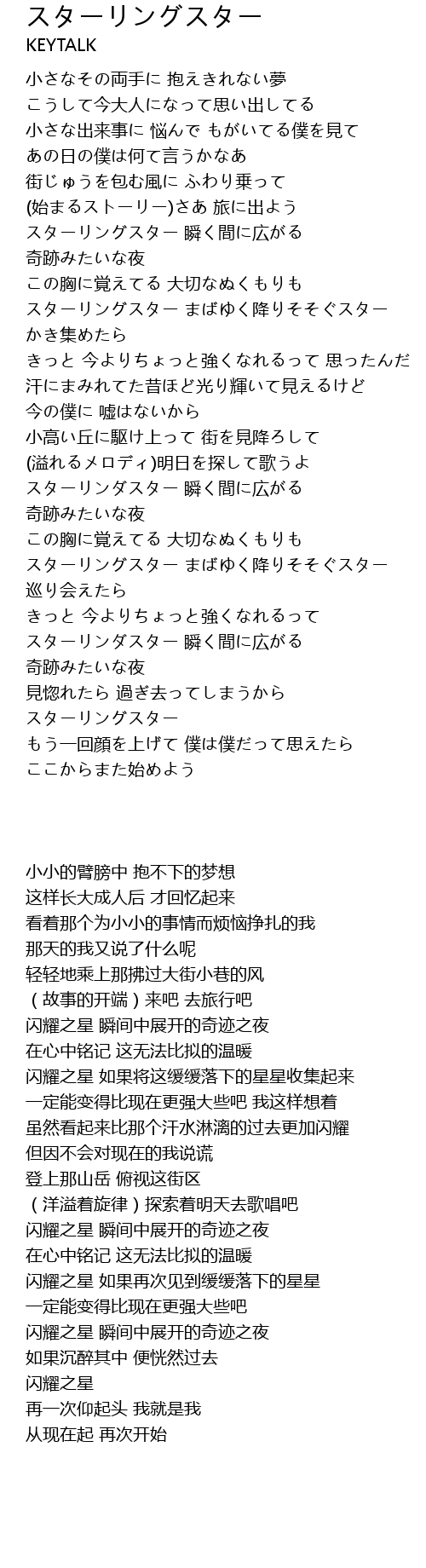 | [02:31.35] | スターリングスター まばゆく降りそそぐスター 巡り会えたら |