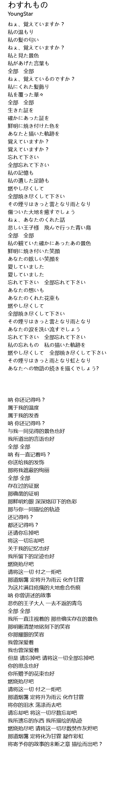 | [04:20.24] | 忘れて下さい 全部忘れて下さい |