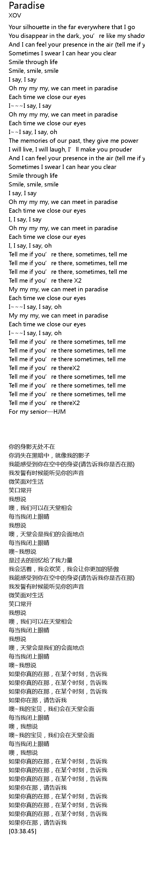 | [03:38.45] | For my senior HJM |