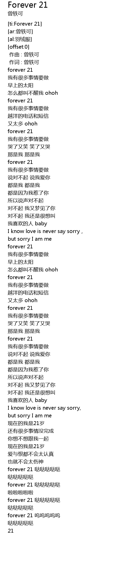 | [03:55.34] | forever 21 呜呜呜呜呜 |