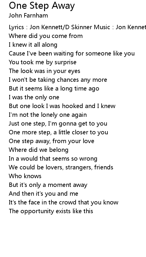 | One step away, from your love | |