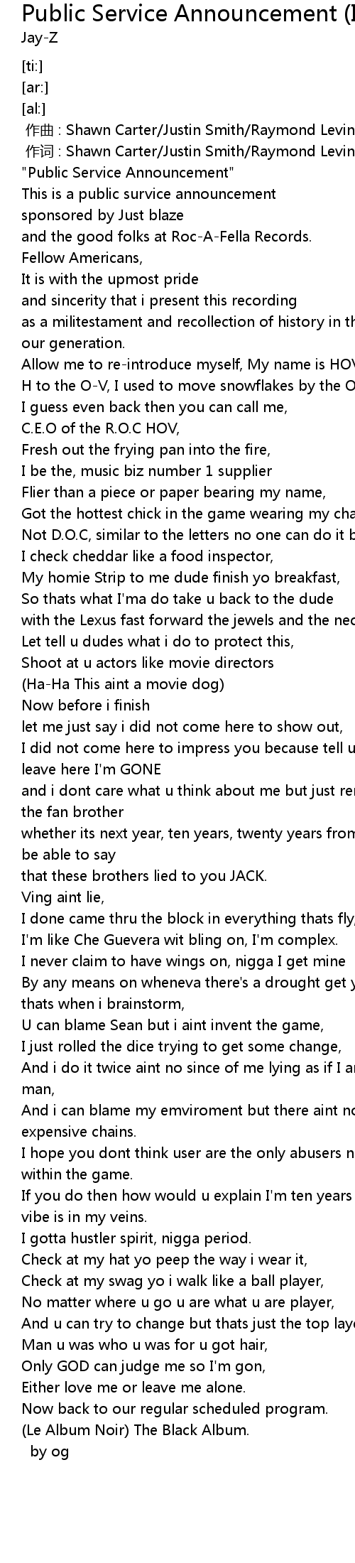 | [00:00.73] | "Public Service Announcement" |