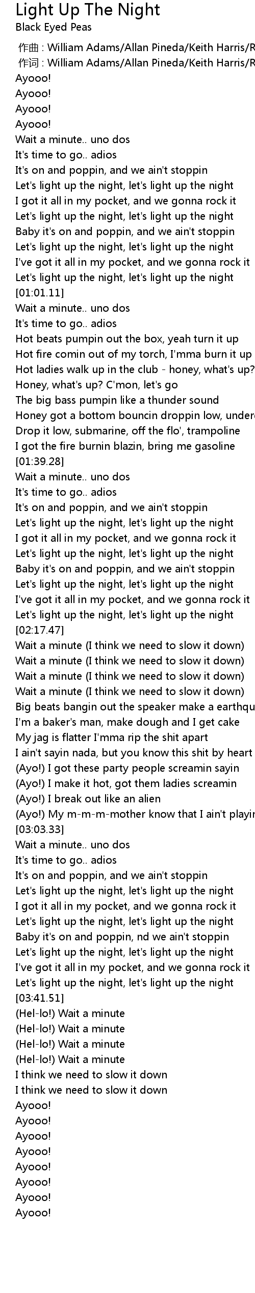 | [03:22.91] | Let' s light up the night, let' s light up the night |