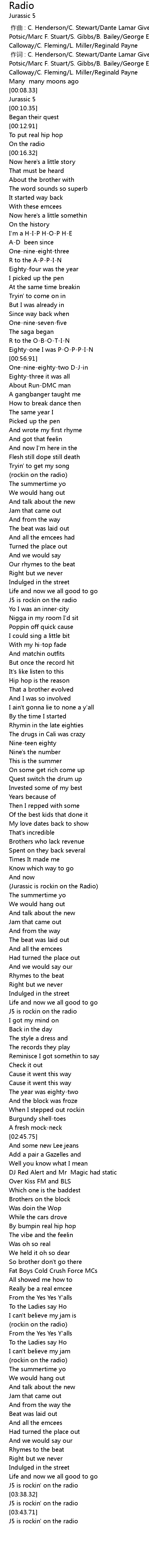 | [02:09.98] | Jurassic is rockin on the Radio |