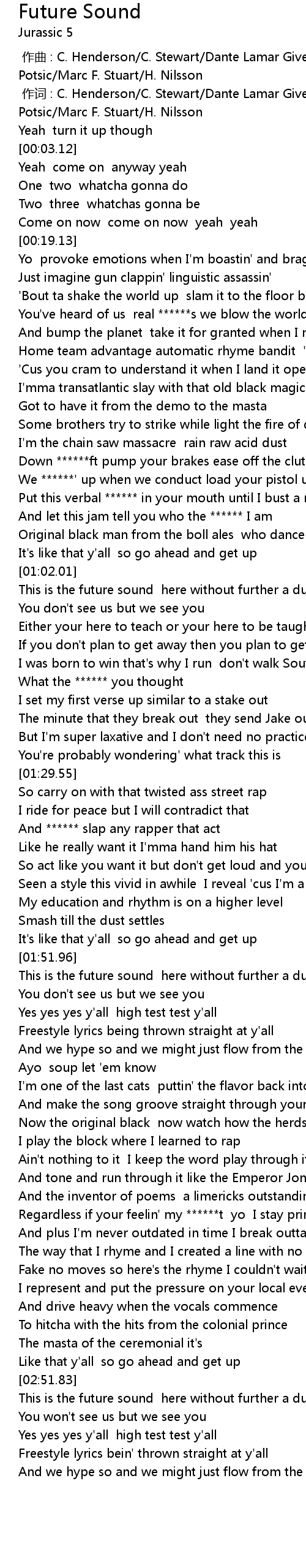 | [03:02.17] | Freestyle lyrics bein' thrown straight at y' all |