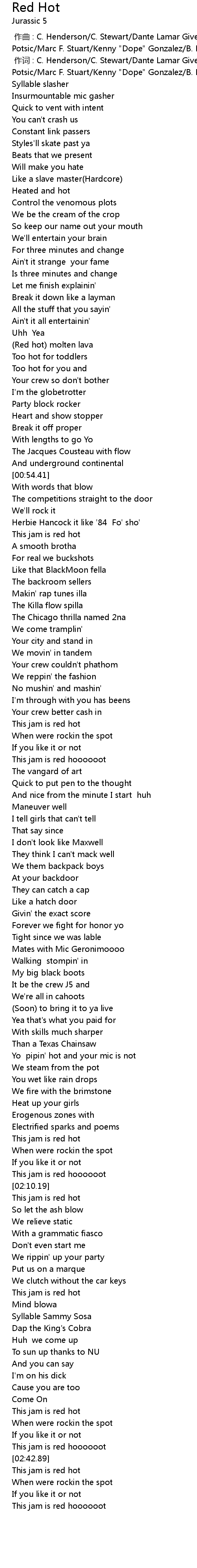 | [02:43.56] | This jam is red hot |
