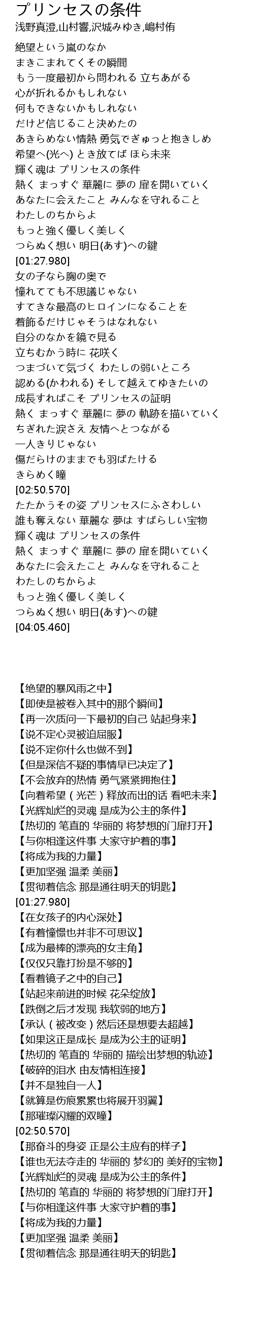 | [03:13.310] | 輝く魂は プリンセスの条件 |