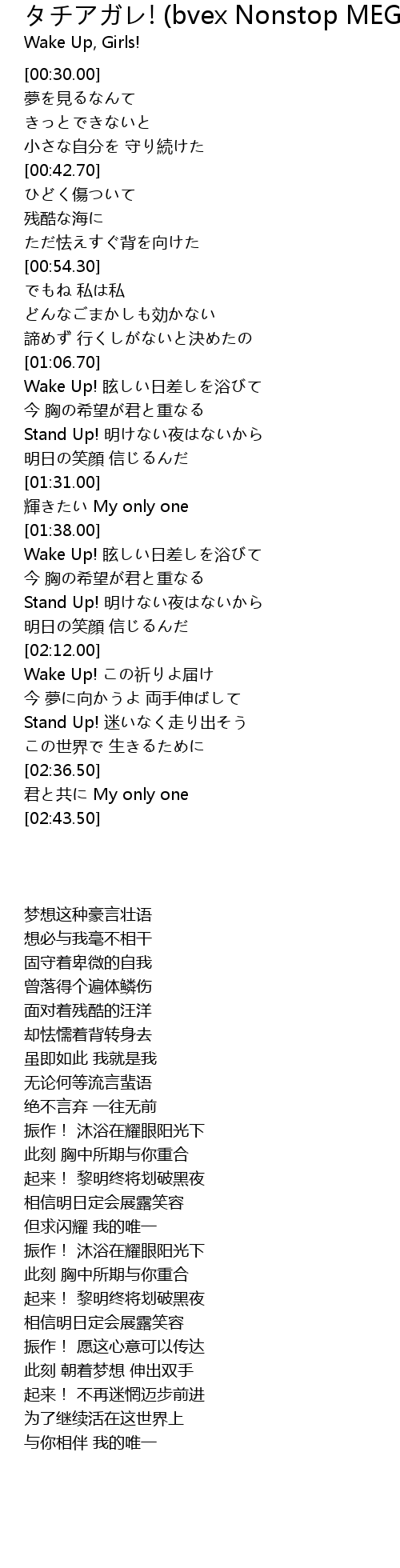 | [02:00.70] | Stand Up! 明けない夜はないから |