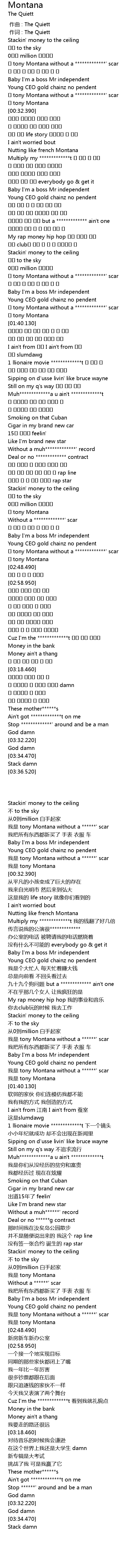 | [01:35.800] | 난 tony Montana without a *************' scar |