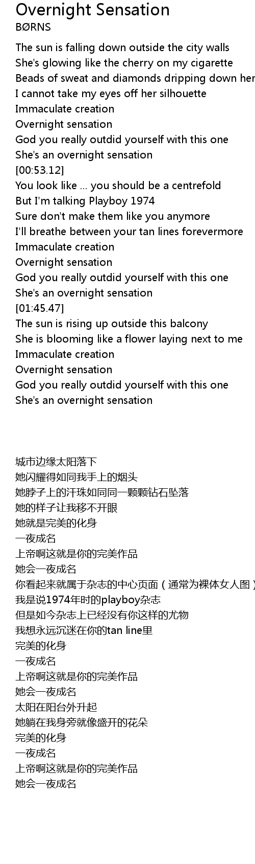 | [02:29.99] | Overnight sensation |