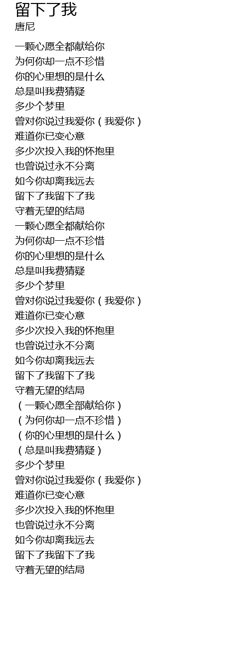 | [01:11.452] | liú xià le wǒ liú xià le wǒ |