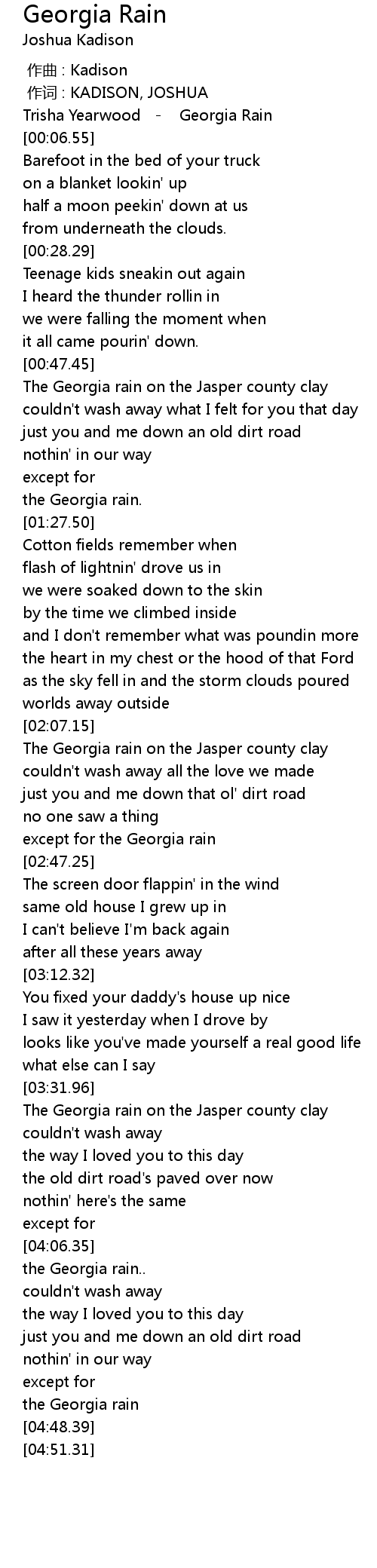| [04:41.60] | the Georgia rain |