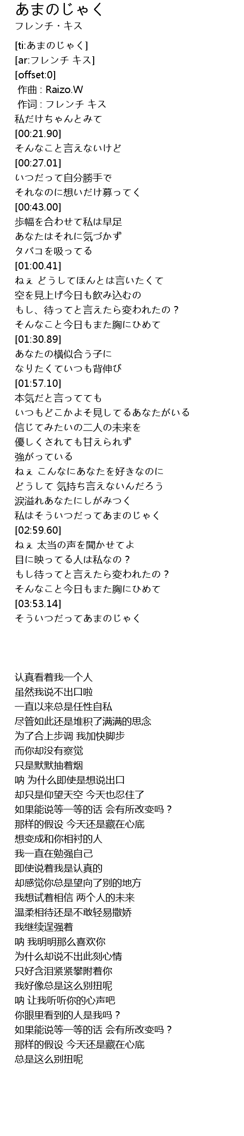 | [00:01.00] | 作词 : フレンチ キス |