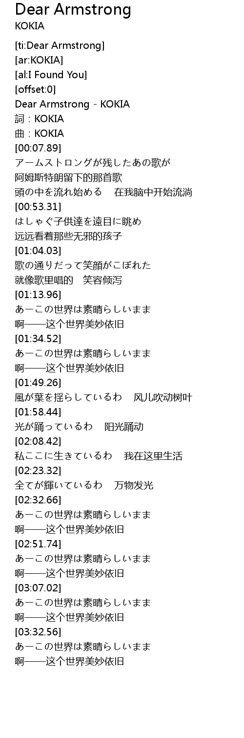 | [00:02.11] | Dear Armstrong - KOKIA |