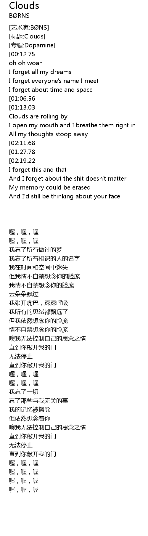 | [01:54.71] | And I forget about the shit doesn' t matter |