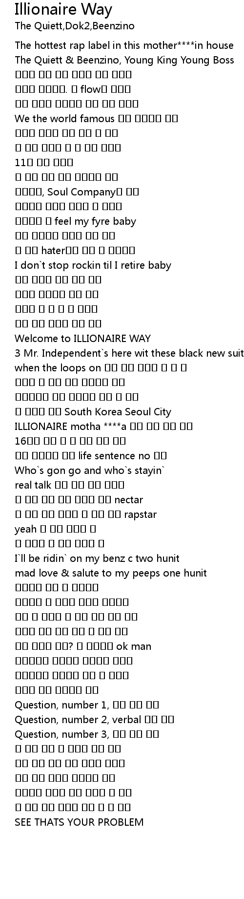 | [01:45.89] | ILLIONAIRE motha ****a 한국 힙합 마담 투소 |