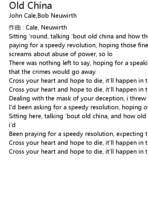 | Sitting here, talking 'bout old china, and how old ladies hair will go to grey, i'd | |